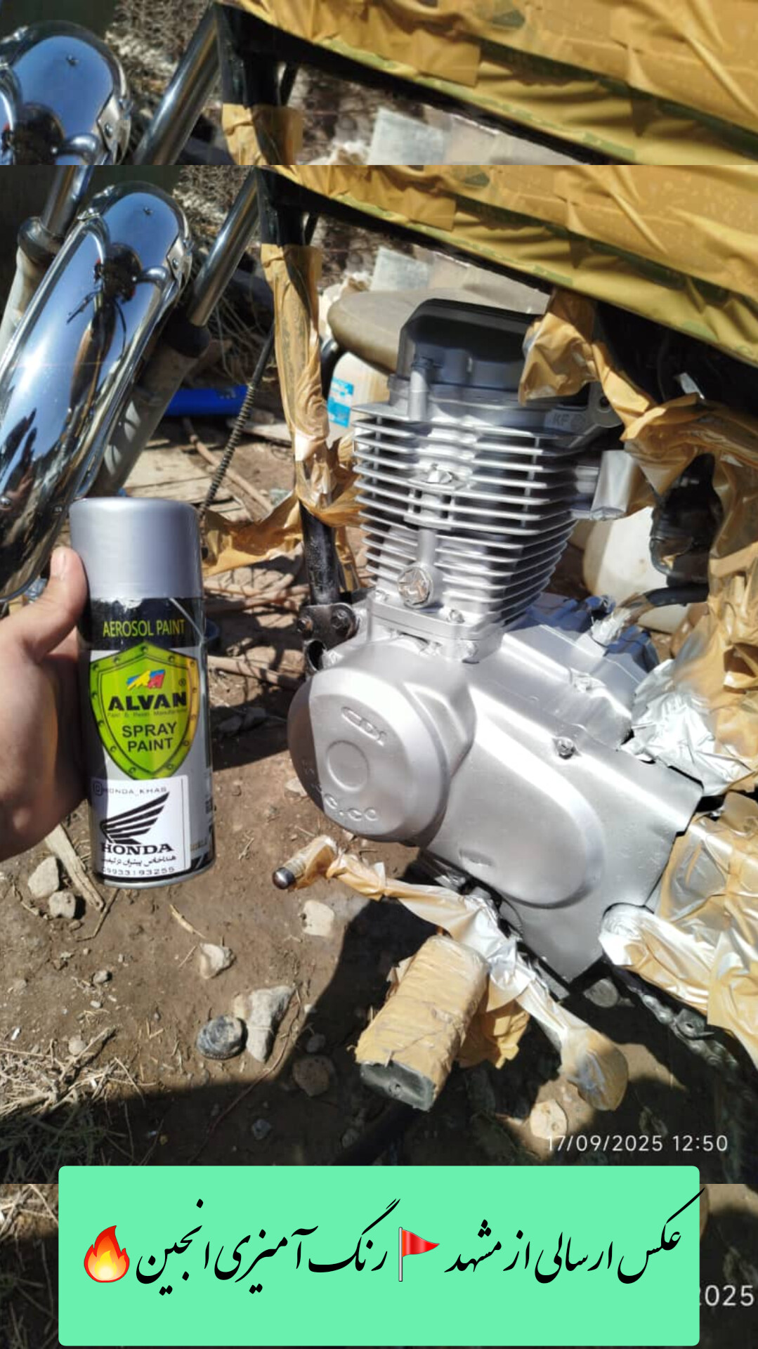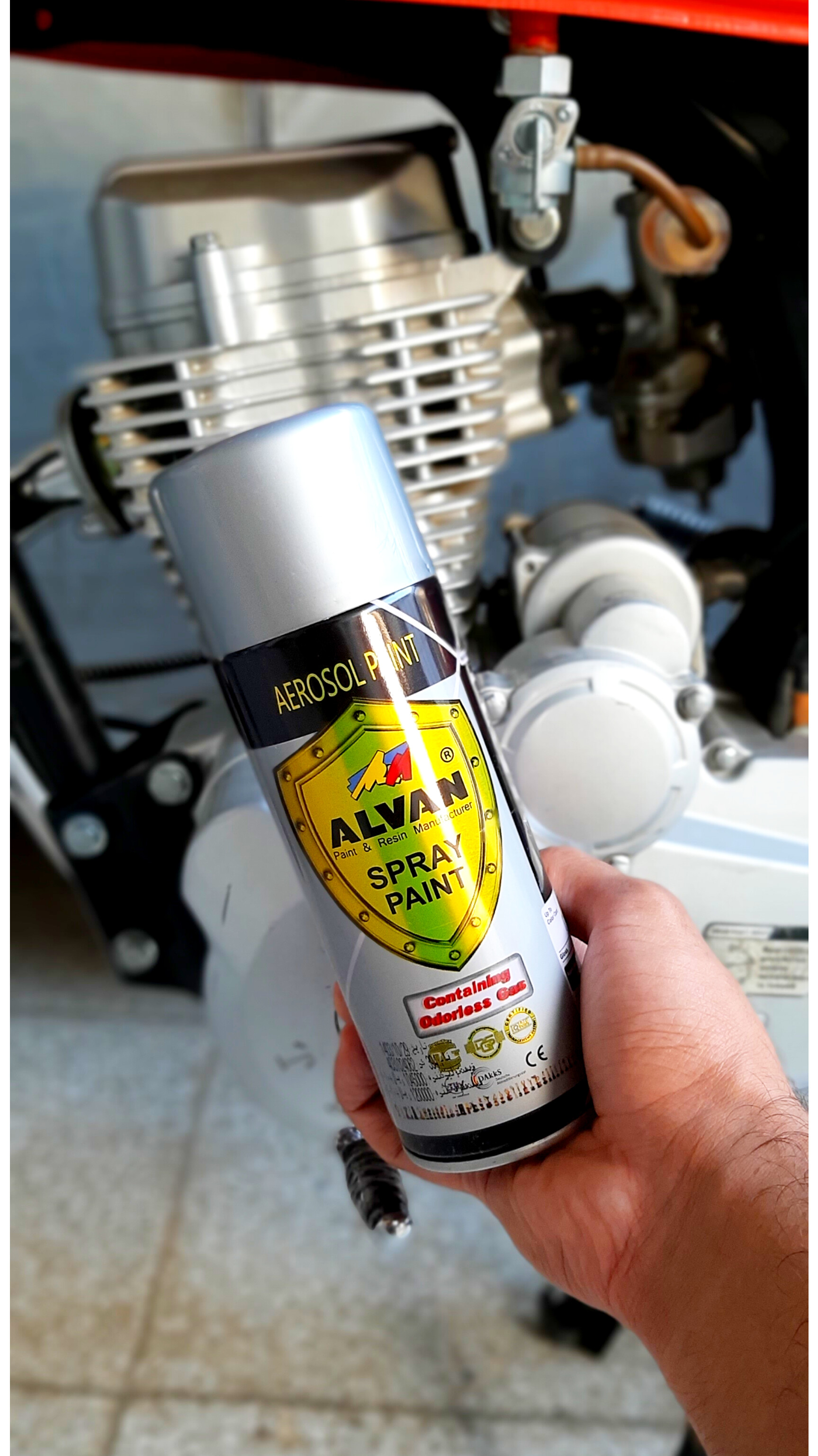 اسپری رنگ انجین موتورسیکلت رنگ نقره ای نسوز مقاوم در برابربنزین